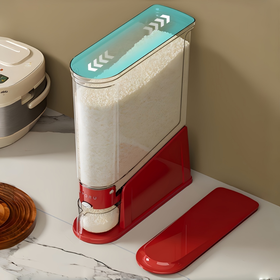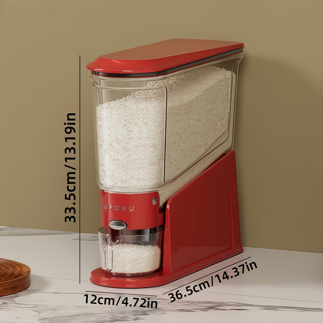 Large Capacity Automatic Rice Dispenser with Transparent Window & Measuring Cup - Airtight Flip-Top Lid Suitable for Rice, Grains, Pet Food Storage Container, Multi-Functional PET Organizer for Kitchen Pantry, Countertop, for Grain Dispenser